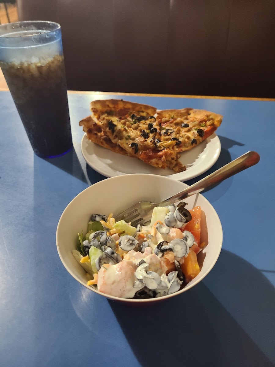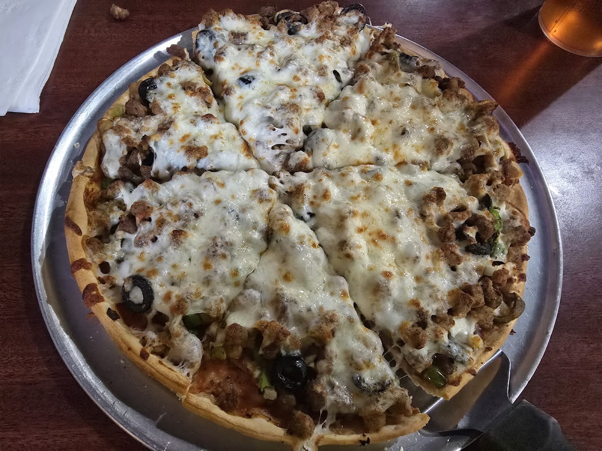 Very tasty pizza fast. I ordered 1 pan and got both pizzas thin, but both pizzas were tasty, hot, and quick to our table. Surprisingly delicious lunchtime treat. And they have a lunch buffet every day but Saturday! Wish we'd made the buffet, but nothing but smiles at what we got. And affordable! The price was a delight.